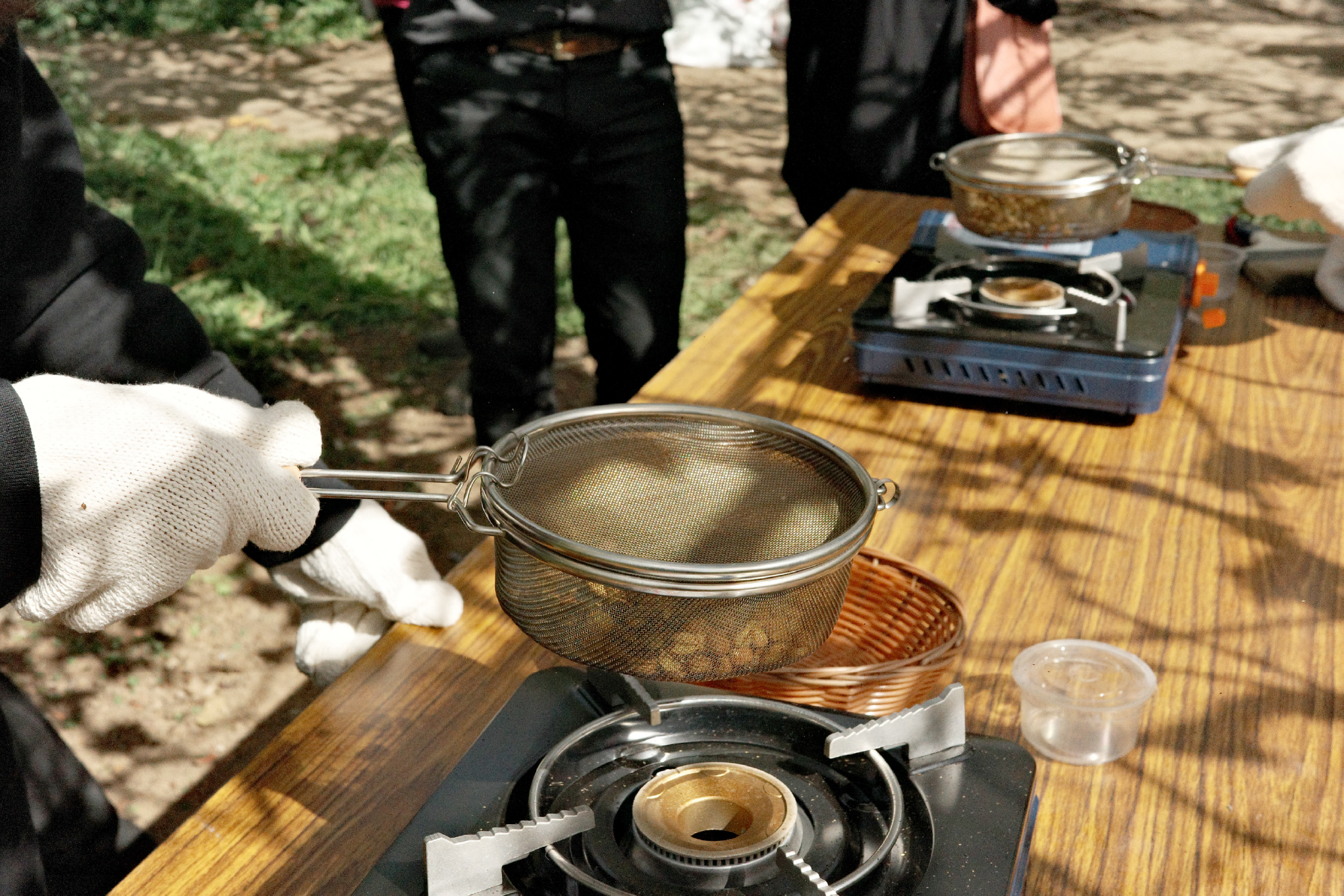 在新社咖啡莊園的午後,莊主樂哥帶領我們體驗了最傳統的「手搖網烘豆」,讓尋豆師用最直接的方式,近距離觀察台中咖啡豆在受熱時的生命力。