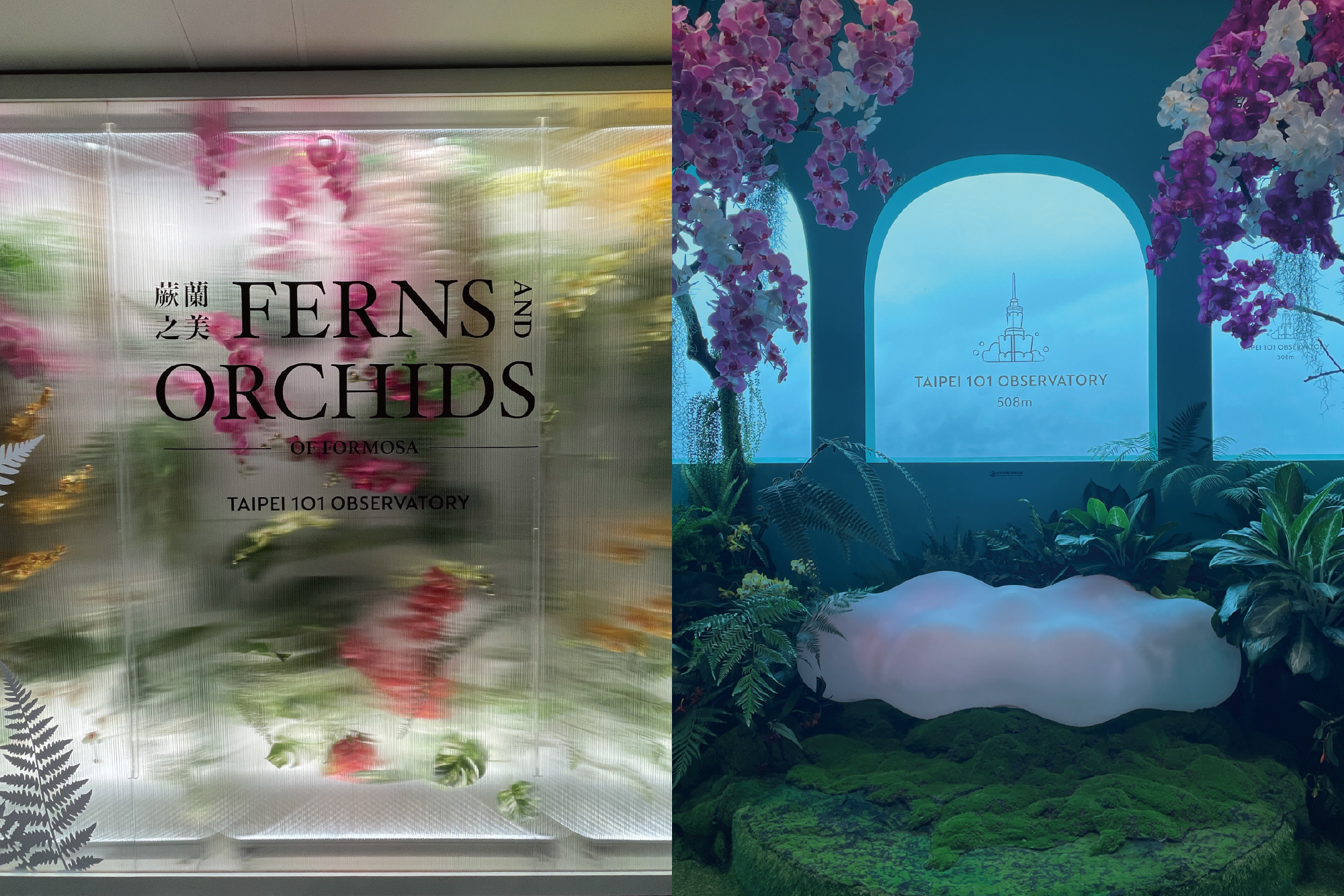 CNFlower西恩創辦人凌宗湧策畫特展《蕨蘭之美》,101樓從原本單純俯瞰城市的地方,轉為一處放慢步調、停留觀看的空間。《蕨蘭之美》以台灣豐富的蕨類與蘭花為主角,依照四季節律打造不同的空間氛圍,在海拔約 500 公尺的高度,城市被留在身後,取而代之的是一種被自然包圍的安全感。這不只是展覽,而是一種 視覺療癒 的狀態切換。