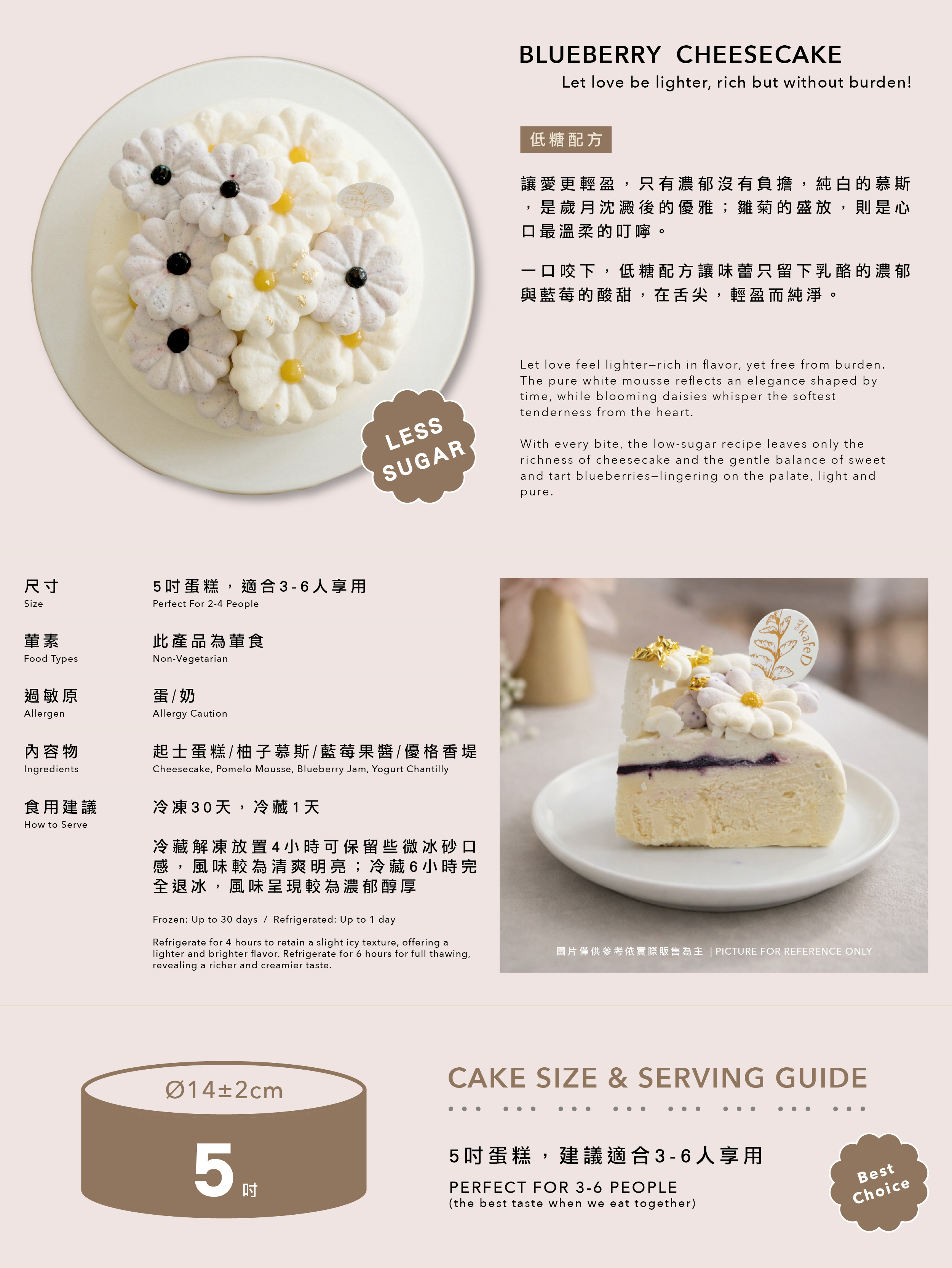 內容成分: 奶油乳酪、鮮奶油、雞蛋、赤藻糖醇、羅漢果糖、奶油、檸檬汁、柚子汁、冷凍藍莓、蛋黃、優格、白巧克力、玉米粉、吉利丁、香草莢、NH果膠